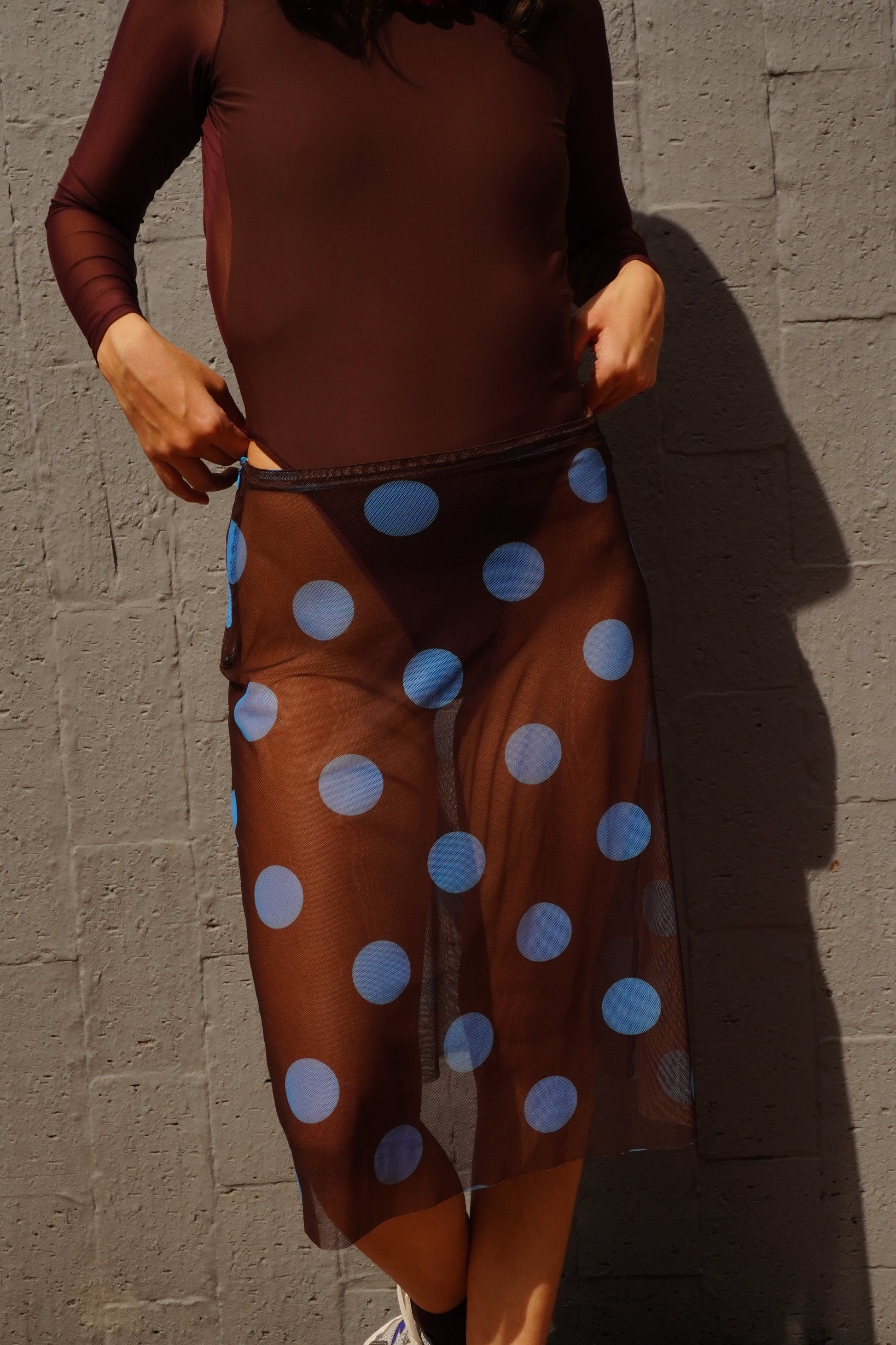 La Slow Queen Mesh Lunares es una falda midi transparente en malla elástica, perfecta para darle un twist atrevido y divertido a tus looks. Ligera, fresca y con lunares oversized que la hacen protagonista sin esfuerzo.